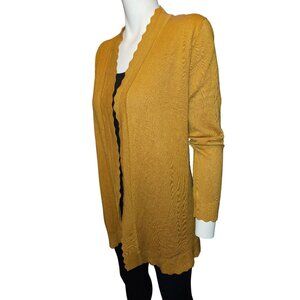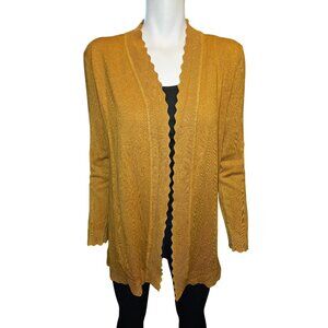 2/$35 Evolution Golden Bronze Scalloped Edge Open Front Cardigan Womens S Petite