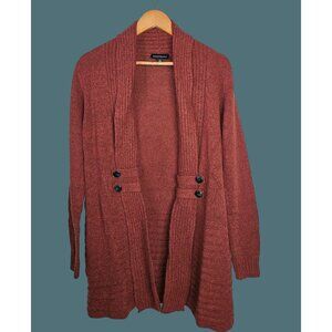 2/$35- Fortune+Ivy Raiden Metallic Button Detail Open Cardigan Sweater Women M
