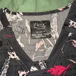 2/$35 Giraffe-ter My Love Cherokee NEW Work Scrubs Size XS iFlex Knit Panel Top