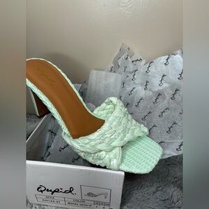 Cute new in box Mint Green Pastel RAFFIA Woven heels