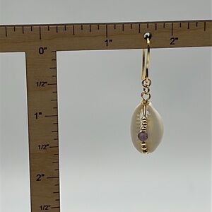 These elegant drop earrings feature a beautiful cream hue accented with gold details, perfect for adding a touch of sophistication to any outfit.
