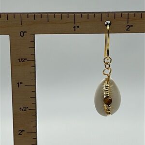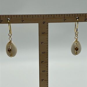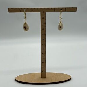 These elegant drop earrings feature a beautiful cream hue accented with gold details, perfect for adding a touch of sophistication to any outfit.