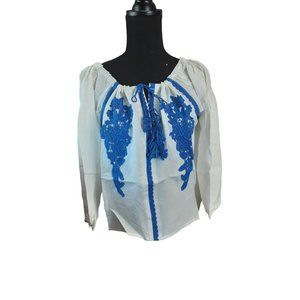 2/$35-Line & Dot Embroidery Off Shoulder Pheasant Boho Blouse Women's Size M