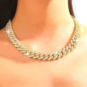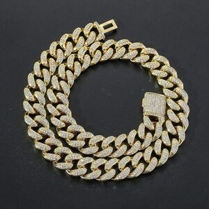 23.62 inch Unisex Cuban link golden diamond chain necklace