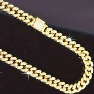 Hip Hop 12mm Golden Cuban Link Chain Necklace with cubic zirconia Stainless steel and simulated diamonds - Expensive looking with high-quality craftsmanship 23.62 inches