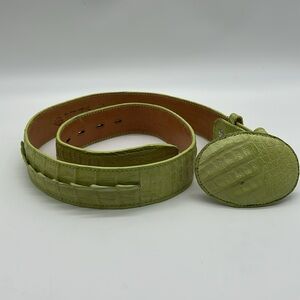 Elevate your style with this chic green textured belt. Perfect for adding a pop of color to any outfit.