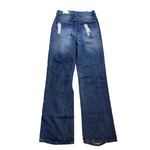 (23821) NWT Almost Famous 90's Fit Wide Leg Jeans Women's Size 1 Distressed