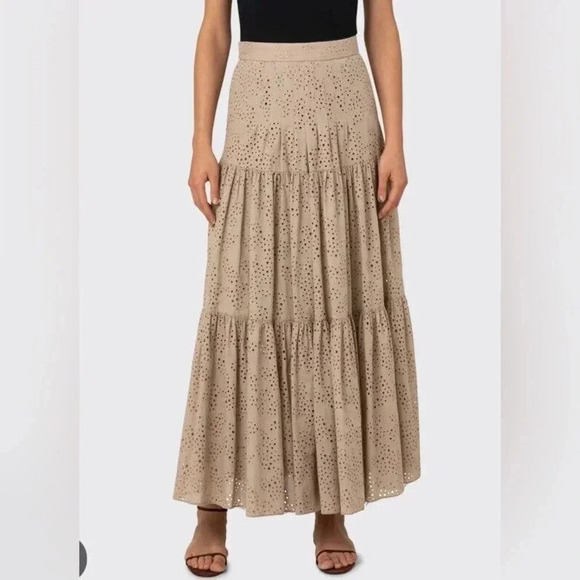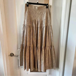 239 Akris Punto Gypsy Eyelet Clay Tiered Maxi Size 8 Color Cream Tan