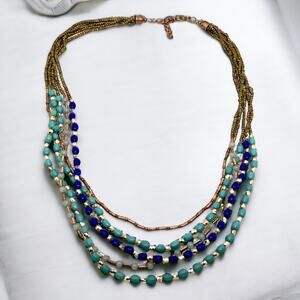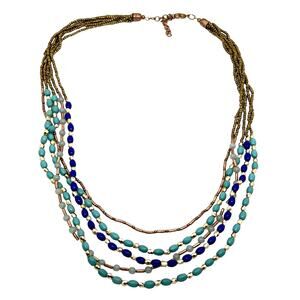 23-Inch Layered Blue and Gold Necklace - Excellent Condition
