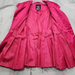23rd Street Jacket Womens M Hot Pink Satin Sheen Double Breasted Trench Coat