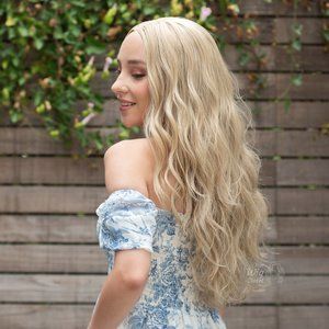 Beautiful Ashy blonde Lace Front Wig. Made with heat resistant synthetic fibers so the hair can be styled with a curling iron or flat iron under 350F° degree. The cap is adjustable for easy wear. The hair is partially hand-knotted strand by strand onto the lace portion which mimics the look of a natural scalp and is also more comfortable and Breathable.