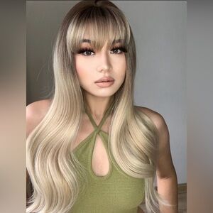 24 “ Balayage Blonde & Brown wavy wig with bangs natural looking for da…