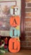Decorative pumpkins spelling 'FALL' in vibrant colors. Perfect for seasonal decor.