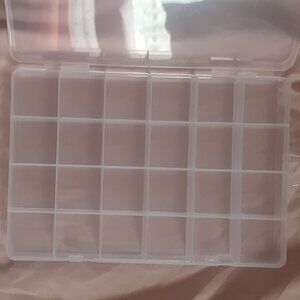 A small storage box! Light weight and easy to carry. Clickable snaps that secure the organizer. There's a hanging plastic hook on the storage organizer to hang it up on a wall. Let me know if you have any questions!