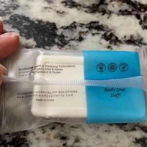 I have 24, new and sealed H2O Therapy soaps. They are organic rice and aloe enriched. Paraben and Gluten free. These are great for travel or an air bnb/rental situation.