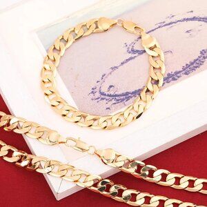 24 Inch 18K Yellow Gold 8mm Wide Open Cuban Necklace and 7.75" Bracelet Combo