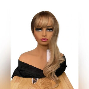 24 Inch Ombre Blonde to brown Wavy wig with bangs for daily use