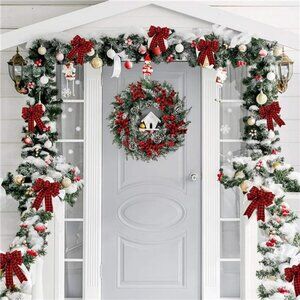 -🌟Suitable for holiday and Christmas Decorations indoor outdoor, home, front door, wall, fireplace, shop window, living room, and other decorations. When displayed outdoors, put it under cover to avoid rain or discoloration. This eye-catching lush and natural Xmas wreath will add charm to your Christmas holiday.