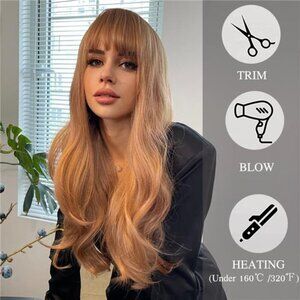 24 Inches Strawberry Blonde Long Wavy Wig with Bangs