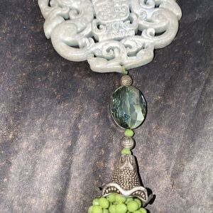 Exquisite 24” Jade, quartz, crystal pendant tassel necklace. Pendant&tassel removable