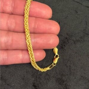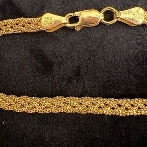 Beautiful Italian stamped braided bracelet, 24 karat gold over Sterling 925 silver. Made in Italy.