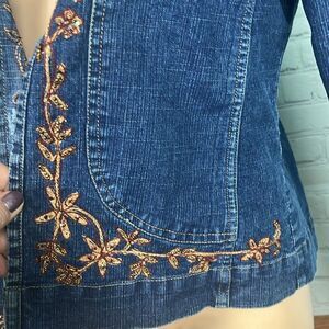 24 Karat Vintage Y2K Boho Embroidered & beaded Denim Jacket Distressed XL