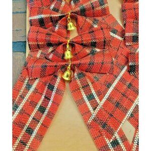24 Mini Christmas Tree Bows w/Bells Decoration Red Plaid 3 packs of 8