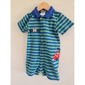 24 Month Vintage Okie Dokie Striped Romper With Emergency Vehicle Appliques