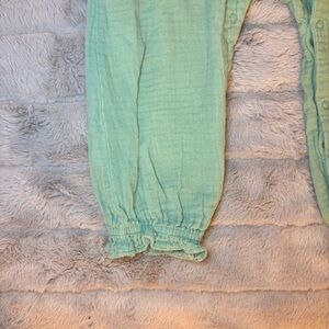 EXCELLENT USED CONDITION -LIKE NEW, no stains or holes. This lightweight green smocked romper by Peek is perfect for St. Patrick's Day, vacation, and everyday wear. It features snap buttons and a cute smocked accent. The romper is easy to put on and take off with the snap buttons. Ideal for little ones aged 18-24 months, this outfit is both stylish and festive for the holiday.