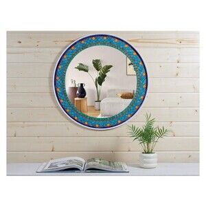 24'' Mosaic Wall Turquiose Mirror Round Decor Colorful Bathroom Living Hallway