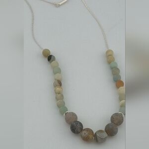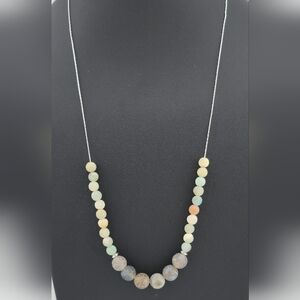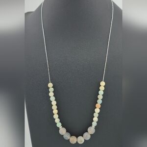 24" Natural Stone Beaded Necklace on 925 Sterling Silver Chain Handmade in Miami