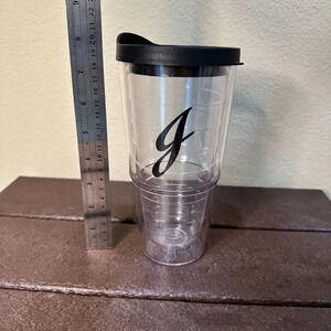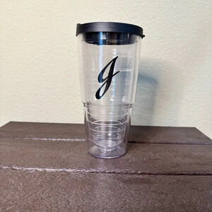 24 Oz Tervis Black Monogrammed “J” Like New Tumbler Mug Glass