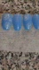 Set of blue press-on nails with white floral designs. Perfect for a stylish look.