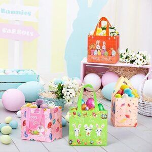 PACKAGE INCLUDES : Our easter baskets party bags include 24 pieces of easter gift bags measuring 8.2x 7.8*5.9 inch. 6 different classic holiday designs, , one style has 2 pieces, make easter gifts a little more special.