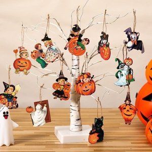 * Halloween Ornaments Wooden Halloween Decorations for Tree Pumpkin Wood Cutout Vintage Halloween Black Cat Bat Hanging Pendants Retro Halloween Decor for Small Tree
