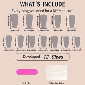 COMES WITH MINI NAIL FILE AND GLUE ADHESIVE STRIPS