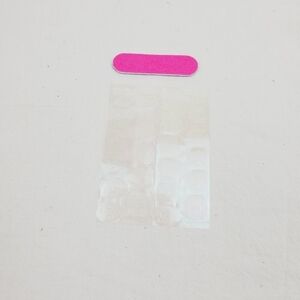 COMES WITH MINI NAIL FILE AND GLUE ADHESIVE STRIPS