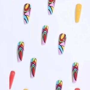 24 PIECES FAKE PRESS ON NAILS COLOR MAY VARY DUE TO LIGHTING SIZE ONE SIZE CONDITION NEW COMES WITH MINI NAIL FILE AND GLUE ADHESIVE STRIPS