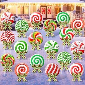 24 Sets Christmas Outdoor Yard Signs Peppermint Candy Corrugated Yard Decor