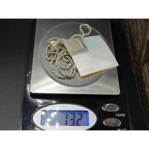 24" Sterling Silver Diamond Shape White Shell Pendant Necklace Vintage