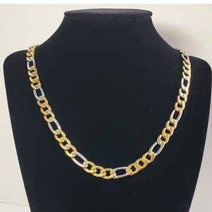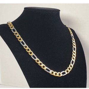 24" Womens 18K Gold Silver Mixed Two Tone Figaro Chain Link Necklace Jewelry 18