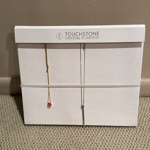 24 hook white necklace display. Elastic strap stabilizer. Logo Touchstone Crystal band flap can hide hooks or flip to back. Excellent condition. Comes in box. Nonsmoking home.