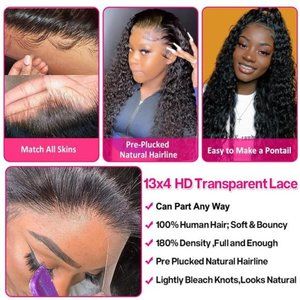 24 inch Deep Wave Lace Front Wigs Human Hair 13x4 HD Transparent Lace Front Wigs