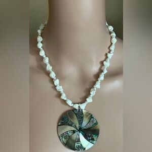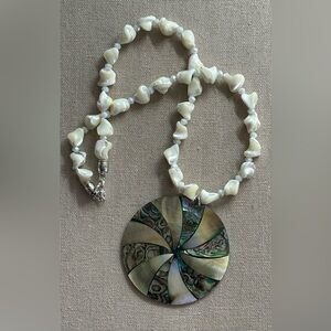 24 inch Freshwater Pearls and Mother of Pearl pendant bead necklace NWOT