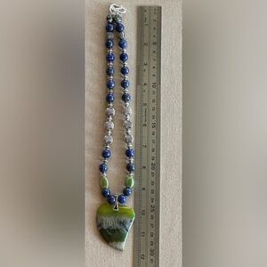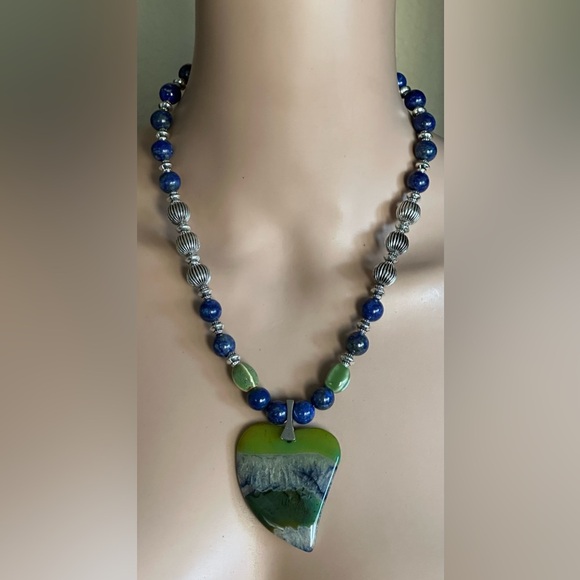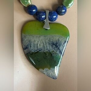 *DRUZY GEODE GEMSTONE Olive Green and Blue Heart Askewed Shaped Pendant