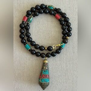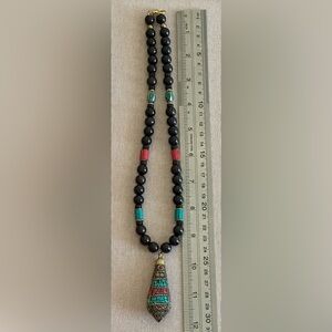 24 inch Tibetan Brass Inlaid bead necklace NWOT