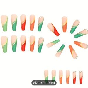 24 pcs Colorful Coffin Press On Nails with Rhinestones and Glitter - Long-Lasting and Easy to Apply