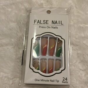24 pcs Colorful Coffin Press On Nails with Rhinestones and Glitter
