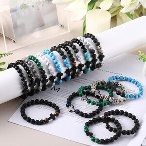 24 pcs Unisex Cross Beads Bracelets Natural Stone Stretch for Men Women — Perfect for mixing and matching your style!