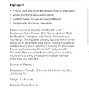 24" x 18" Landscape Study Framed Wall Canvas Antique Gold - Studio McGee NWT